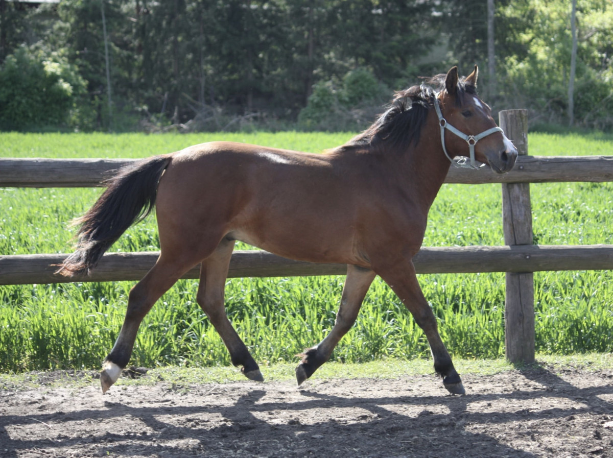 - 1,5 roczna skarogniada, dopłatowa klaczka małopolska, docelowo 160 cm +, bardzo grzeczna, wychowana na wielohektarowych pastwiskach,