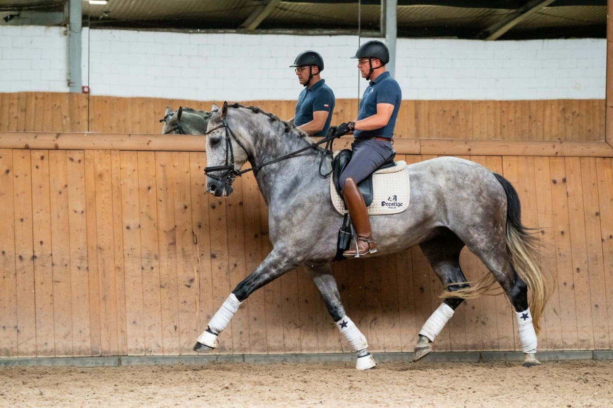 Duży, bardzo przyjazny i bezproblemowy w obsłudze koń. Grzecznie stoi przy kowalu oraz przy transporcie. Wyszkolony na poziomie małej rundy z elementami Grand Prix. Dobrze radzi sobie gdy jest w nowym miejscu. Ma za sobą wiele startów w zawodach na poziomie małej rundy.
