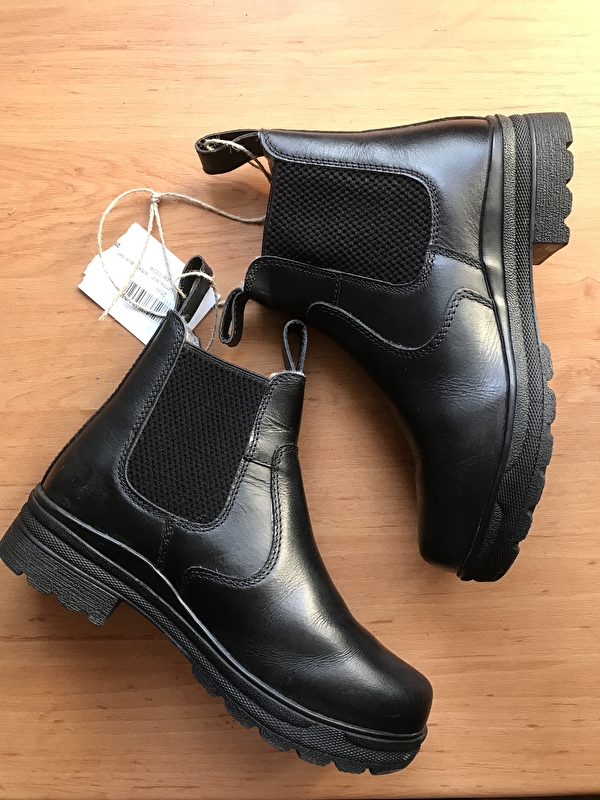 Wsuwane botki wykonane z woskowanej skóry, podszyte ciepłym polarem typu teddy (100% poliester). Elastyczne wstawki po obu stronach i dwie szlufki umożliwiają szybkie zakładanie i zdejmowanie butów. Podeszwa z bieżnikiem i piętą przyjazną dla jeźdźców wykonana jest z antypoślizgowej gumy i gwarantuje najlepszą przyczepność w strzemieniu, a także na śliskim podłożu.