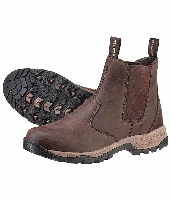 Wytrzymałe buty jeździeckie z bardzo miękką wkładką dzięki dwuwarstwowej podeszwie (podeszwa środkowa z miękkiego materiału EVA, podeszwa zewnętrzna z antypoślizgowej gumy). Elastyczne wstawki po bokach oraz pętelki do wciągania zapewniają szybkie zakładanie. Cholewka wykonana z PU. Podszewka z siatki.