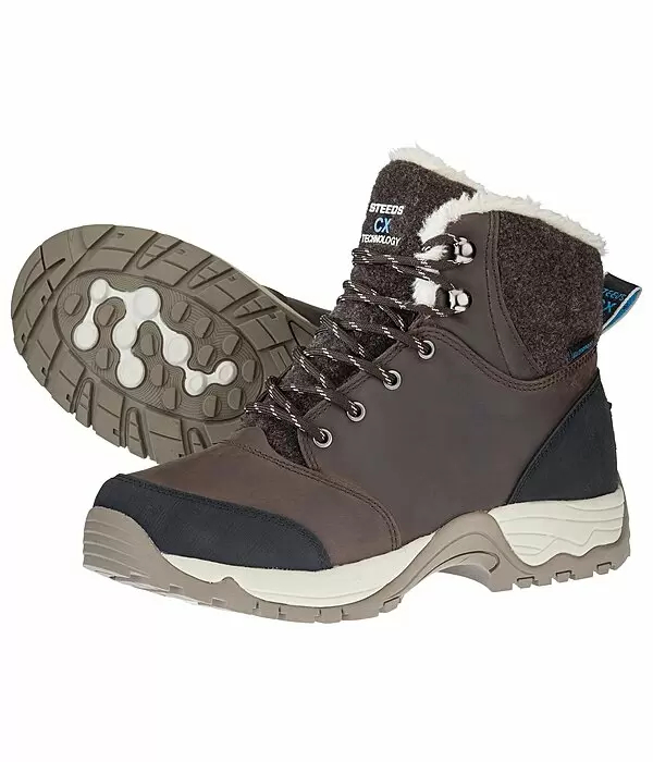 Zimowe buty jeździeckie wykonane ze skóry bydlęcej najwyższej jakości z ocieplającym polarem. Wbudowana membrana i boczny język buta zapobiegają przedostawaniu się śniegu i wody. Wkładka CX Technology posiada najlepsze właściwości amortyzacyjne i zapewnia maksymalny komfort podczas długich przejażdżek i chodzenia. Inne funkcje obejmują wzmocniony obszar pięty, miękką wyściółkę z polaru w kostkach, szybkie sznurowanie odblask z tyłu.