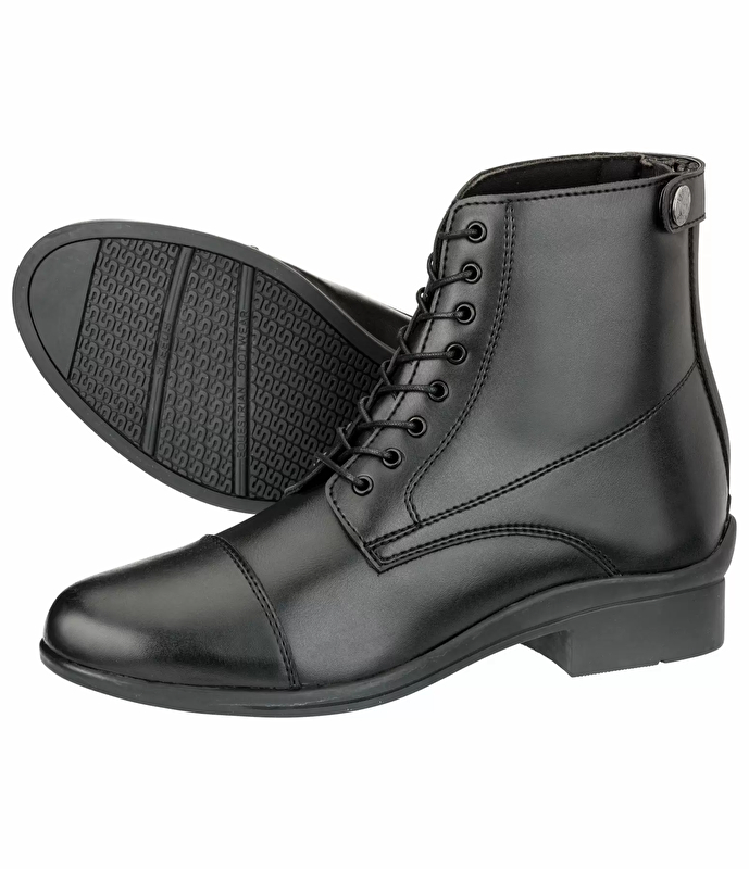 Botki sznurowane, wykonane z miękkiej cholewki z zamkiem z tyłu umożliwiającym szybkie zakładanie i zdejmowanie. Teraz ze sportową podeszwą zewnętrzną i ulepszonym dopasowaniem. Wyściółka z tkaniny tekstylnej, podeszwa zewnętrzna z gumy z piętą do jazdy konnej.