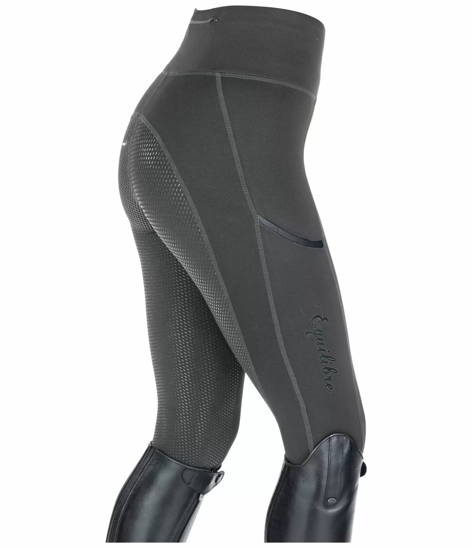 Niezwykle wygodne legginsy jeździeckie wykonane z elastycznego, super miękkiego materiału rozciągliwego w czterech kierunkach z pełnym silikonowym lejem. Bardzo szeroki pas, jedna tylna kieszeń zapinana na zamek, kieszeń na telefon komórkowy na nogawce, brak szwów na kolanach i elastyczne ściągacze nogawek bez rzepów. Materiał: 68% wiskoza, 27% nylon, 5% elastan.