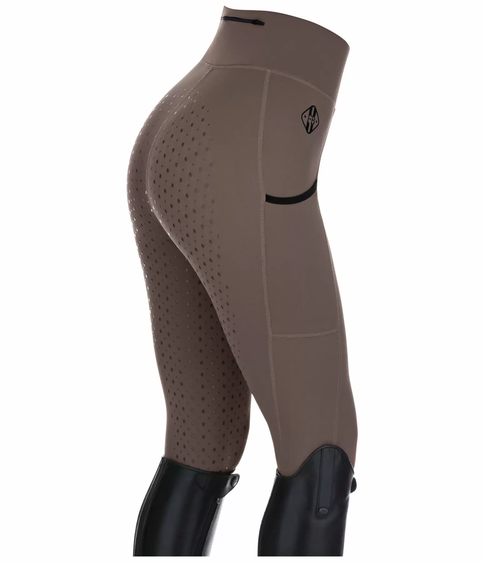 Niezwykle wygodne legginsy jeździeckie wykonane z wysokiej jakości materiału rozciągliwego w 4 kierunkach z pełnym silikonowym siedziskiem. Gładkie na zewnątrz i przytulne wewnątrz. Bardzo szeroki pas, tylna kieszeń na suwak, kieszeń na nogawce i elastyczne ściągacze nogawek bez rzepu. Materiał: 78% nylon, 22% elastan.