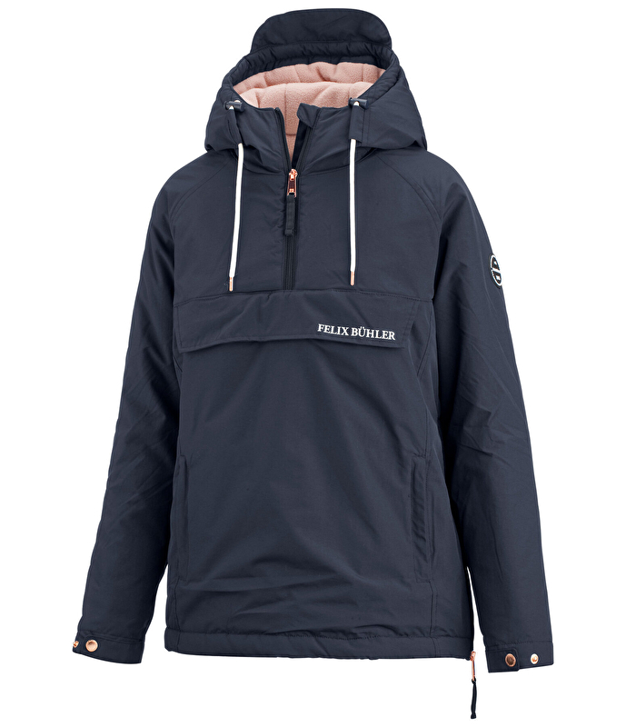 Sportowa i ciepła wiatrówka z kapturem, z wieloma praktycznymi detalami i wypełnieniem z miękkiej imitacji puchu. W całości podszyta przytulnym polarem od wewnątrz. Długi suwak z boku ułatwia zakładanie i zdejmowanie. Regulowany kaptur z wysokim kołnierzem i suwakiem, kieszeń na piersi z zapięciem na rzep, 2 przednie kieszenie zapinane na suwak, regulowana szerokość rękawa i naszywka Felixa Bühlera na rękawie.