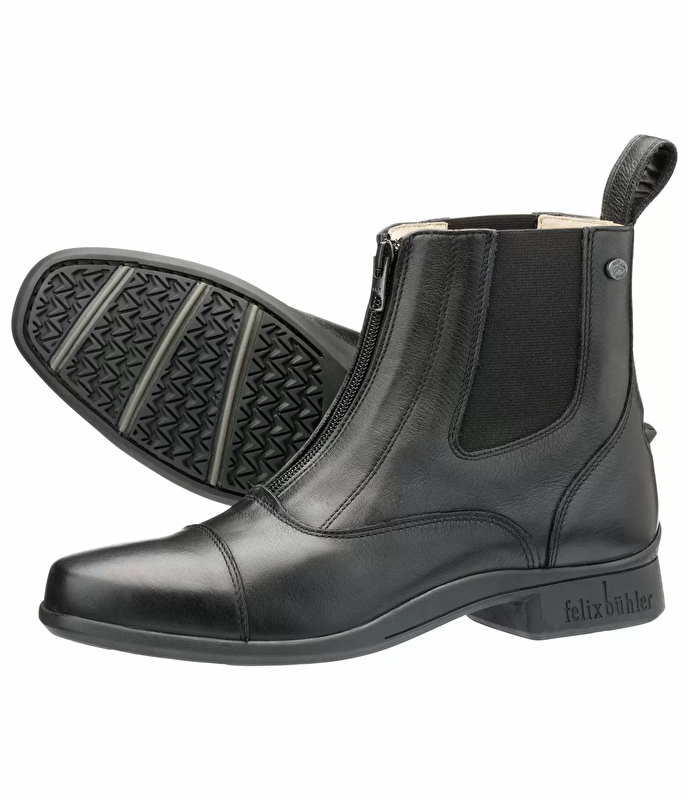 Sportowe botki zapinane na zamek, wykonane z włoskiej skóry licowej bydlęcej z miękką wyściółką ze świńskiej skóry. Zamek YKK z przodu umożliwia szybkie wejście, a elastyczne wstawki po obu stronach zapewniają niezbędny komfort. Wkładka z technologią Comfort Footbed Technology, która posiada wielowarstwową wkładkę, zapewnia najlepsze właściwości amortyzacyjne. Dodatkowo misternie zaprojektowana podeszwa zewnętrzna, która jest przyszyta do cholewki buta, zapewnia optymalne wsparcie w strzemieniu.