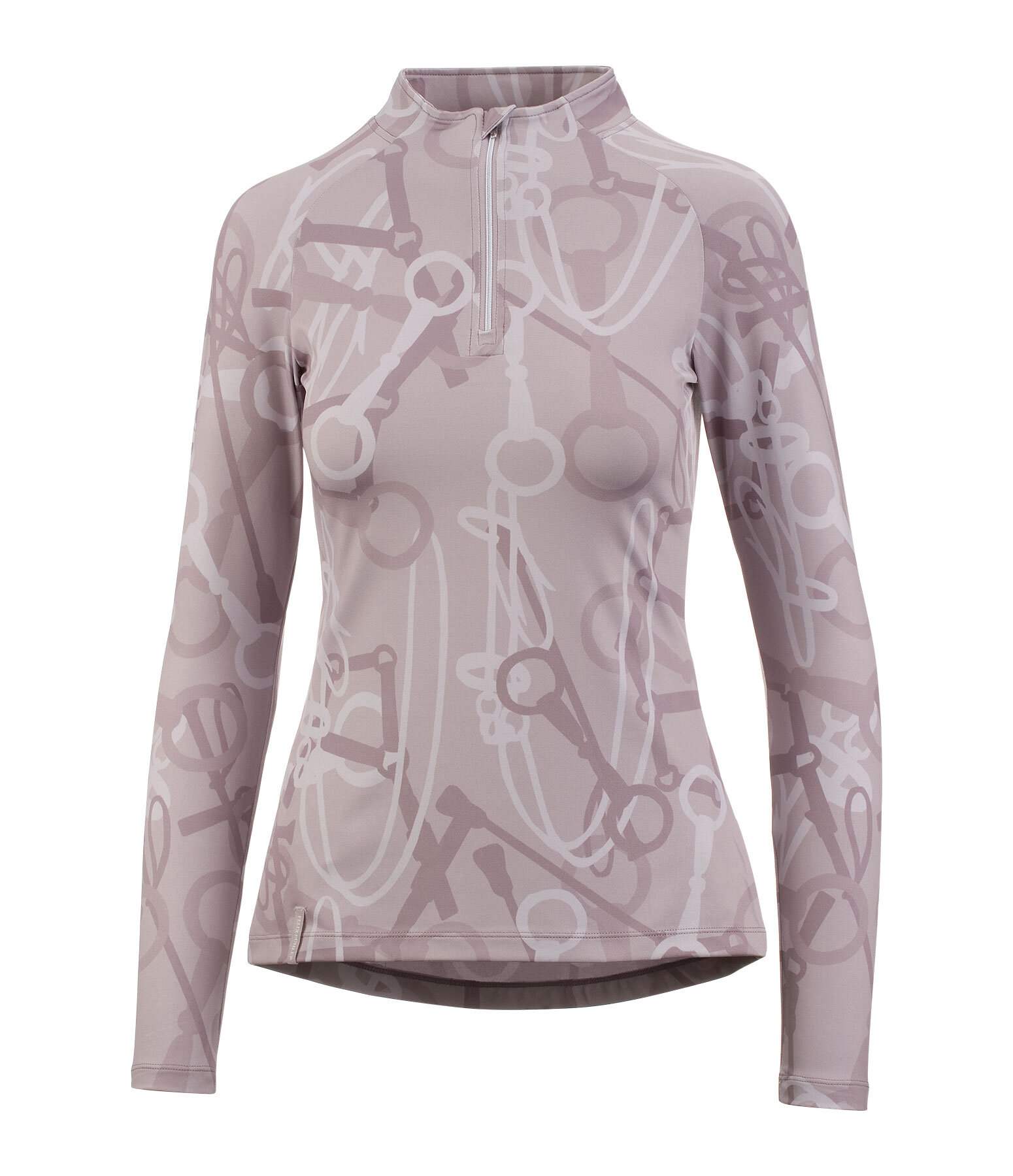 Miękka i elastyczna, funkcjonalna koszula z długim rękawem i szykownym nadrukiem z motywami jeździeckimi na całej powierzchni. Z kołnierzem typu stójka i zamkiem błyskawicznym z osłoną podbródka. Oddychająca i szybkoschnąca. 88% poliester, 12% elastan.