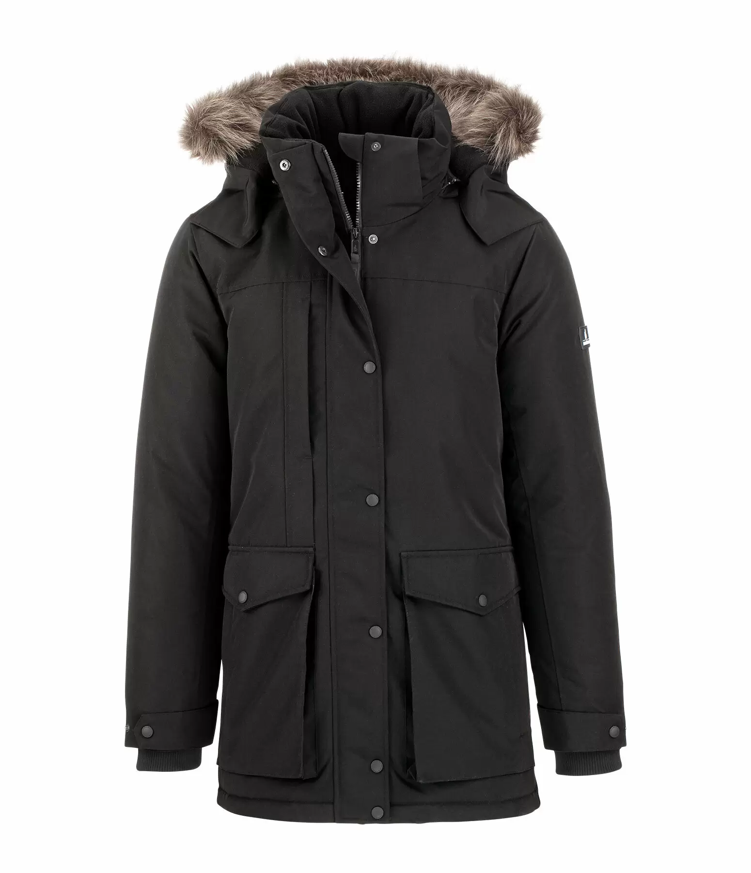 Nowoczesna, dłuższa męska kurtka jeździecka z wysokim kołnierzem i kapturem z odpinanym kołnierzem ze sztucznego futra. Kołnierz i kaptur podszyte są miękkim polarem, a kaptur można odpiąć lub zapiąć na zatrzask z tyłu. Oddychająca, wodoodporna (5000 mm) i wiatroszczelna. Ciepło podszyta, z ukrytym dwukierunkowym zamkiem błyskawicznym z przodu z osłoną podbródka, dwiema dużymi kieszeniami z patkami i zatrzaskami z przodu oraz jedną kieszenią na piersi zapinaną na zamek. Naszywka Felix Bühler na rękawie i nadruk z logo na całej powierzchni. Kurtka posiada boczne rozcięcia zapinane na zamek, elastyczne mankiety z cienkiego ściągacza oraz regulację szerokości rękawów. 100% poliester.