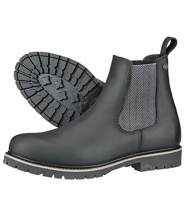 Szykowne jodhpury wykonane ze skóry bydlęcej, które przyciągają wzrok zarówno w stajni, jak i podczas noszenia na co dzień. Kontrastowe elastyczne wstawki umożliwiają łatwy dostęp. Solidna podeszwa zewnętrzna zapewnia optymalne wsparcie i jest zaprojektowana z eleganckim ozdobnym szwem na górze, a amortyzująca wkładka jest wyjmowana.
