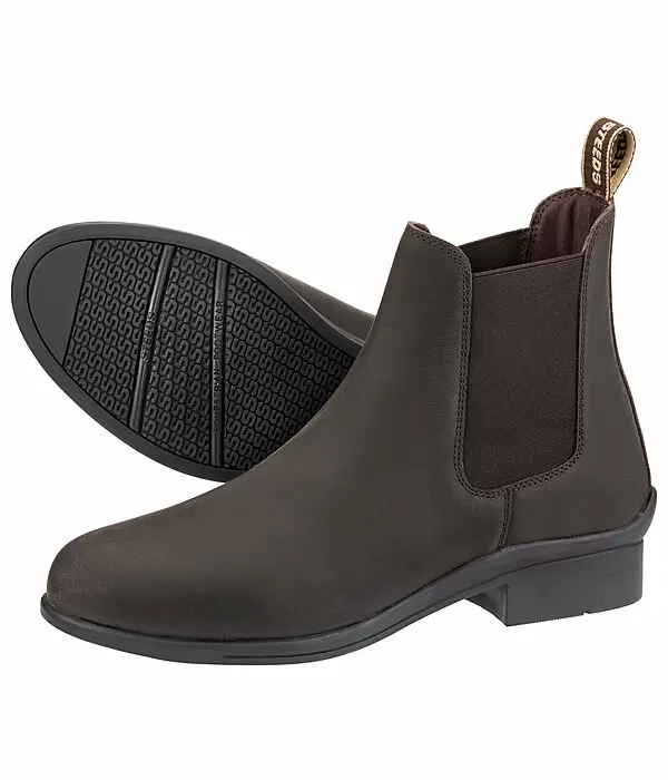Wsuwane buty jodhpur ze skóry bydlęcej, teraz ze sportową podeszwą i ulepszonym dopasowaniem. Elastyczne wkładki po obu stronach, w połączeniu z solidną pętlą do ciągnięcia, umożliwiają szybkie zakładanie i zdejmowanie butów. Nowo zaprojektowana gumowa podeszwa zewnętrzna z piętą zapewnia niezbędne wsparcie. Wewnętrzna podszewka wykonana z materiału tekstylnego.