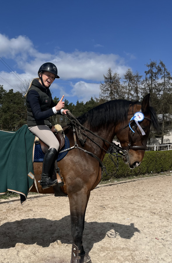 Od dwóch lat jeździ na nim 15-letnia,drobna dziewczynka, która zdobyła na nim złotą odznakę jeździecką ZOJ i II klasę sportową w skokach.