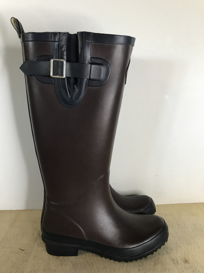 Wodoodporne gumowe buty o klasycznym wyglądzie. Antypoślizgowa bieżnikowana podeszwa zapewnia optymalną przyczepność, wygodna wkładka zapewnia wysoki poziom komfortu. Kolejnym szczegółem jest regulacja szerokości łydki.