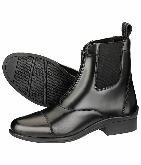 Botki zapinane na suwak wykonane ze skóry bydlęcej. Te jodhpury mają teraz sportową podeszwę zewnętrzną i lepsze dopasowanie. Elastyczne wkładki po obu stronach zapewniają najlepszy komfort, zamek błyskawiczny z przodu w połączeniu z pętelką do szybkiego zakładania i zdejmowania. Nowo zaprojektowana gumowa podeszwa zewnętrzna z piętą zapewnia niezbędne wsparcie. Podszewka wykonana z materiału tekstylnego (100% poliester).