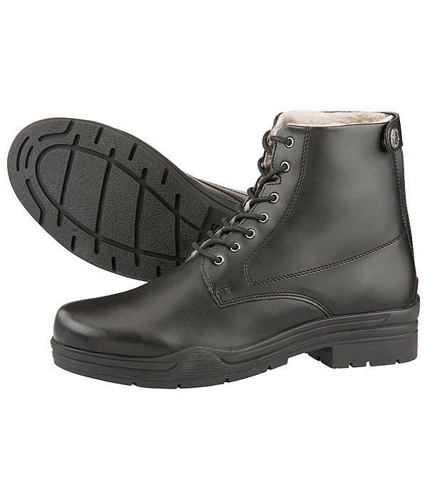 Solidne zimowe buty jeździeckie wykonane z miękkiego materiału wierzchniego.. Wewnętrzna podszewka wykonana z ciepłego pluszowego polaru . Zamek błyskawiczny z tyłu ułatwia zakładanie i zdejmowanie. Solidna bieżnikowana podeszwa z piętą odpowiednią do jazdy, wykonana jest z antypoślizgowej gumy i zapewnia niezbędną przyczepność.
