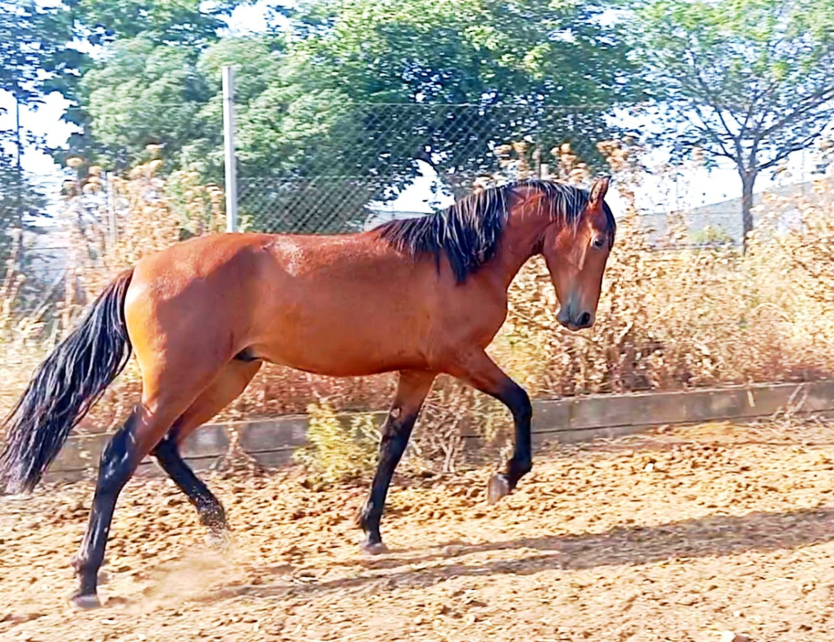 2 letni, gniady ogier Pura Raza Española, wpisany do księgi stadnej ANCCE. Koń w typie barokowym, z prestiżowej linii ESCALERA odznaczającej się świetnym ruchem. Po wysokich rodzicach, ojciec 172, matka 167 w kłębie, powinien bez problemu osiągnąć wzrost 168. Koń do sprowadzenia z Hiszpanii, pomagamy dopełnić wszelkich formalności i zorganizować transport do Polski. Filmy na Whatsapp.