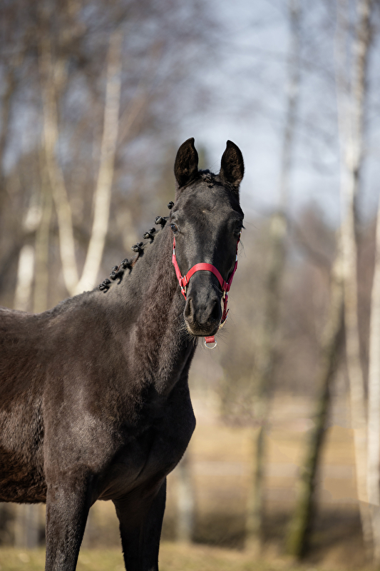 Poprawna budowa, piękny ruch. Chodzi na uwiązie, bezproblemowy w obsłudze, nauczony kowala. Bardzo proludzki.