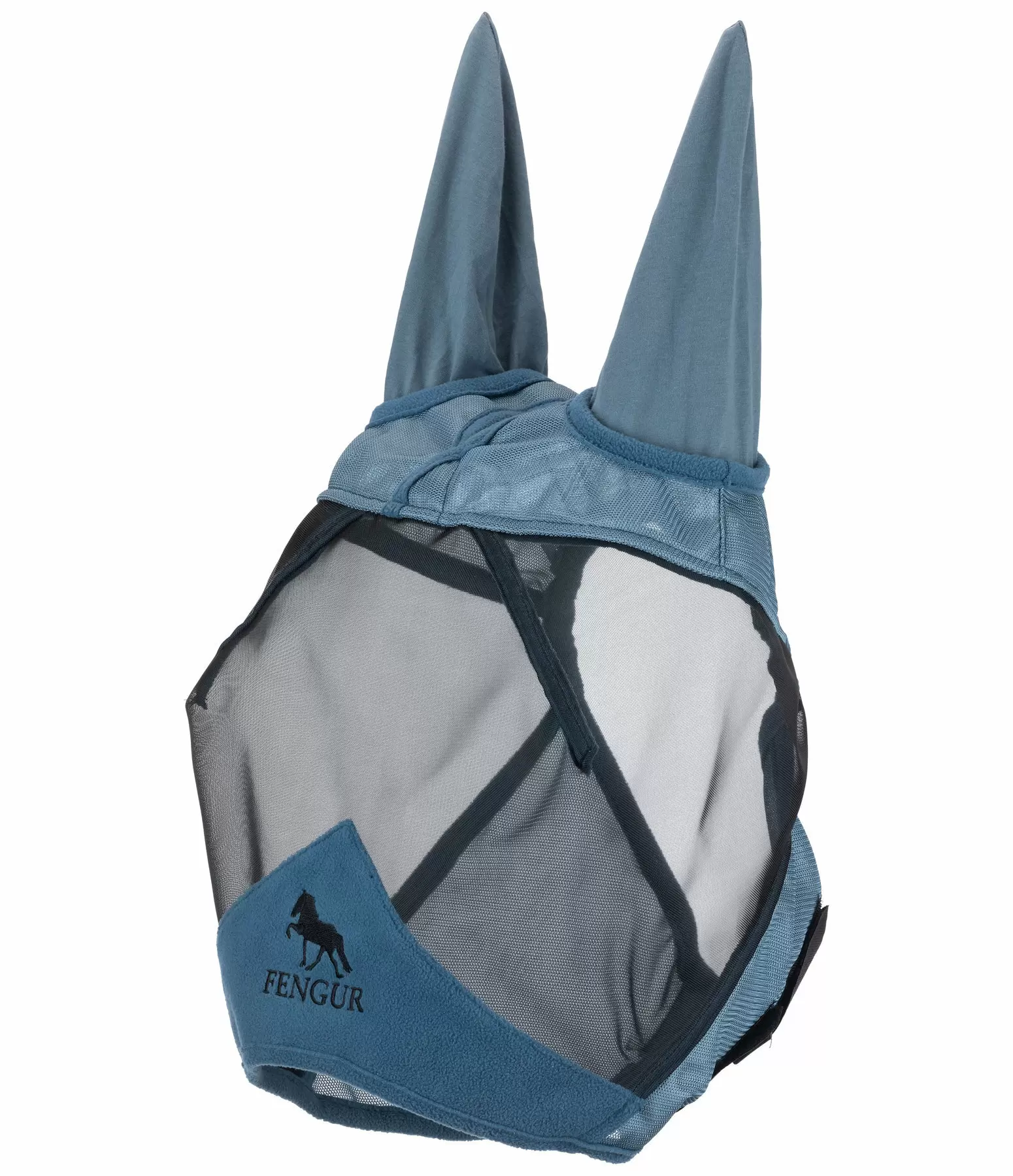 Funkcjonalna maska przeciw muchom ze specjalnym dopasowaniem dla koni islandzkich. Wycięcie na grzywę jest wyjątkowo duże, aby zapewnić wystarczająco dużo miejsca. Krawędzie maski są wykończone miękkim polarem, aby uniknąć otarć w miejscach użytkowania.