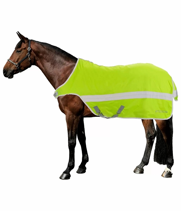 Lekka, wiatro- i wodoodporna odblaskowa derka z szerokimi odblaskowymi paskami i odblaskową lamówką dla lepszej widoczności w ruchu ulicznym. Optymalna swoboda ruchów dzięki innowacyjnemu krojowi. W komplecie paski krzyżowe i sznurki na ogon. 100% poliestru. 200 DEN.