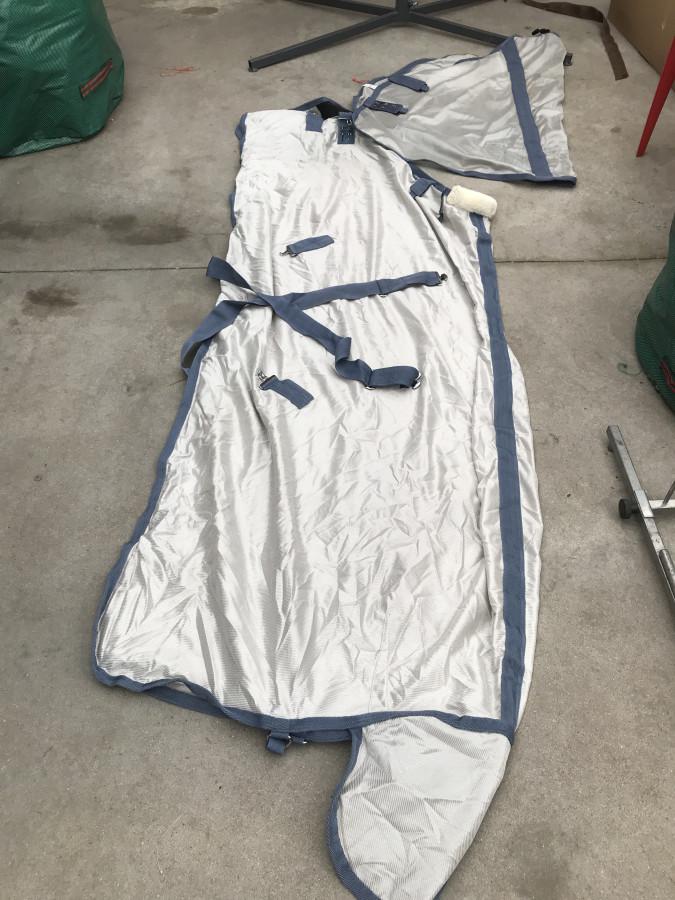 Klasyczna derka przeciw muchom wykonana z gęstej siatki. Opcjonalnie można ją idealnie połączyć z pasującym elementem chroniącym szyję przed muchami za pomocą praktycznego systemu zapinania na rzepy. Podwójne przednie zapięcie w kształcie litery T z dodatkowym rzepem. Regulowane pasy krzyżowe, klapa na ogon i sznurek na ogon. Miękkie, polarowe wypełnienie na kłębie i gładka, przyjazna dla sierści podszewka w okolicy ramion i ogona zapewniają dobry komfort. 100% poliester.