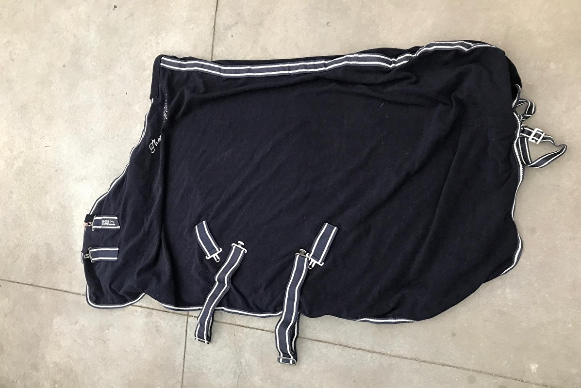 Bardzo funkcjonalna derka odprowadzająca wilgoć. Wykonana z przyjemnego materiału frotte, który szybko odprowadza wilgoć od ciała. Z podwójnym zapięciem na piersi w kształcie litery T i regulowanymi pasami poprzecznymi. Miękkie wypełnienie kłębu i gładka, przyjazna dla futra podszewka w okolicy ramion i klatki piersiowej, zapobiegająca otarciom. W zestawie regulowany pasek na ogon. Sportowe logo haftowane w okolicy ramion. 100% poliester.