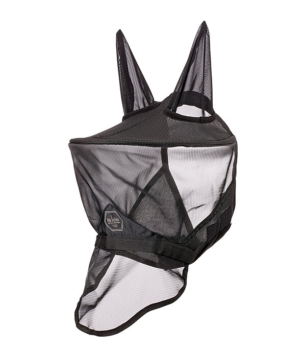 Maska przeciw muchom inspirowana ochroną pszczelarza z odpinanym nozdrzem i ochroną UV wykonana ze szczególnie oddychającej siatki Moisture Vapor Transmission (MVT), która umożliwia stałą cyrkulację powietrza pod maską i zapobiega gromadzeniu się ciepła. Idealna ochrona uszu, oczu i nozdrzy przed irytującymi komarami i owadami. Gęsto oplatana i wyjątkowo wytrzymała siatka przeciw muchom ripstop ze zintegrowanym pierścieniem, który zapewnia bardzo wygodną odległość między materiałem siatki a oczami i pozostaje na swoim miejscu nawet podczas turlania się i harców. Dodatkowa ochrona wrażliwego nosa konia dzięki anatomicznie ukształtowanemu ochraniaczowi nozdrzy, który można zdjąć za pomocą zapięcia na rzep, co pozostawia otwory nozdrzy, a zatem nie podrażnia konia ani nie ogranicza jego oddychania. Z miękkim polarowym wykończeniem dookoła, aby zapobiec otarciom. Nauszniki wykonane z elastycznego, perforowanego materiału rozciągliwego. Podwójne zapięcie na rzep dla bezpiecznego dopasowania. Ochrona UV 60% + (oczy). 100% poliester.