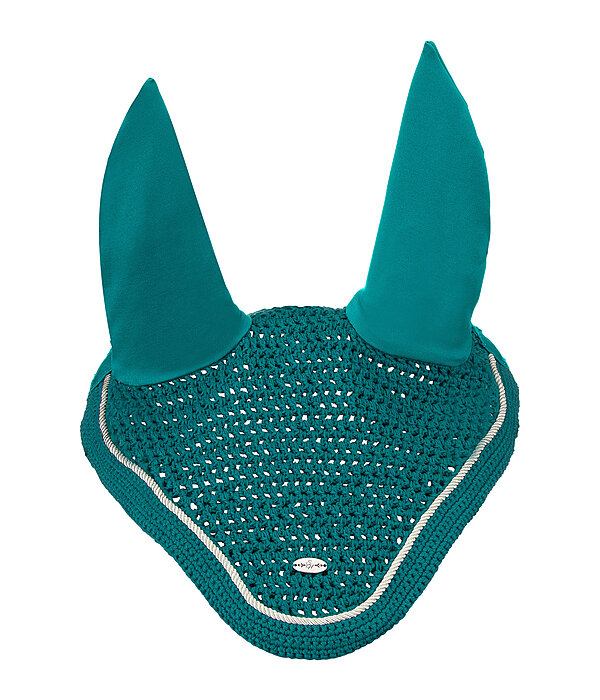 Klasyczne, szydełkowane nauszniki na muchy z prostym, jedwabistym błyszczącym ozdobnym sznurkiem w subtelnym kontrastowym kolorze i elastycznymi częściami na uszy. Srebrna metalowa płytka z grawerowanym logo. Kaptur 100% poliester, materiał na uszy 97% bawełna, 3% elastan.