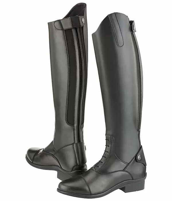 Oficerki jeździeckie i wykonane z miękkiego materiału wierzchniego, teraz z wieloma ulepszonymi detalami. Anatomicznie ukształtowana okolica kostki z elastycznym sznurowaniem oraz elastyczne wstawki po obu stronach cholewki zapewniają idealne dopasowanie i wysoki komfort. Długi zamek z tyłu jest teraz dodatkowo osłonięty ochraniaczem na ostrogi. Inne funkcje obejmują sportową podeszwę zewnętrzną, lepsze dopasowanie do stopy i zapięcie na zatrzaski na górnym końcu cholewki. Wewnętrzna wyściółka wykonana z tkaniny tekstylnej.