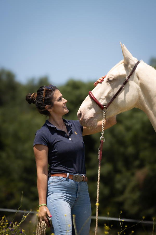 3 letnia klacz Lusitano maści Cremello, o niebieskich oczach. 161 w kłębie. Pracuje na lonży, zajeżdżona. Charakter na medal. Mimo młodego wieku, jest koniem, który nada się dla każdzego jeźdźca, również początkującego. Klacz bez wpisu do księgi hodowlanej (oboje rodzice Lusitano). Do wglądu aktualne czyste rtg. posiada hiszpański paszport i jest do sprowadzenia z Hiszpanii - pomagamy w załatwieniu wszelkich formalności i organizacji transportu do Polski.
