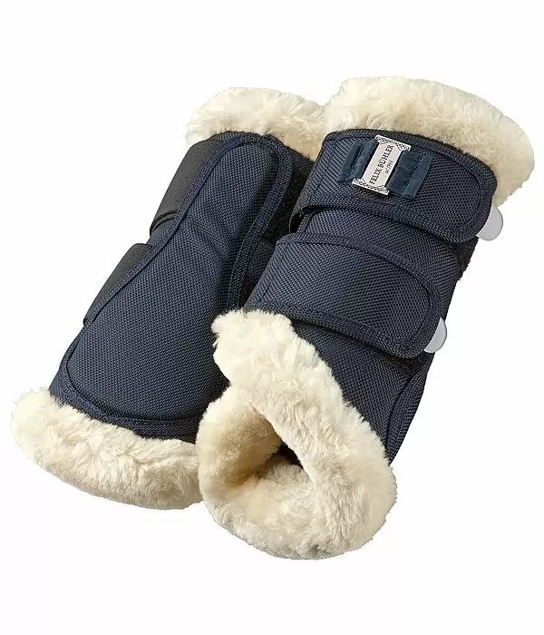 Eleganckie buty do ujeżdżania na przednie nogi z miękkim polarowym wykończeniem na górze i dole oraz wyściełaną, elastyczną podszewką z gumy chloroprenowej dla optymalnej ochrony przed uderzeniami. Zewnętrzna strona wykonana z wytrzymałego, odpornego na zabrudzenia materiału outdoorowego o grubości 600 denierów. Anatomiczny kształt i potrójne zapięcia na rzepy z elastycznymi wstawkami dla idealnego dopasowania. Metalowe blaszki z logo Felix Bühler. Wewnętrzna podszewka 100% gumy chloroprenowej, materiał zewnętrzny 100% poliester.