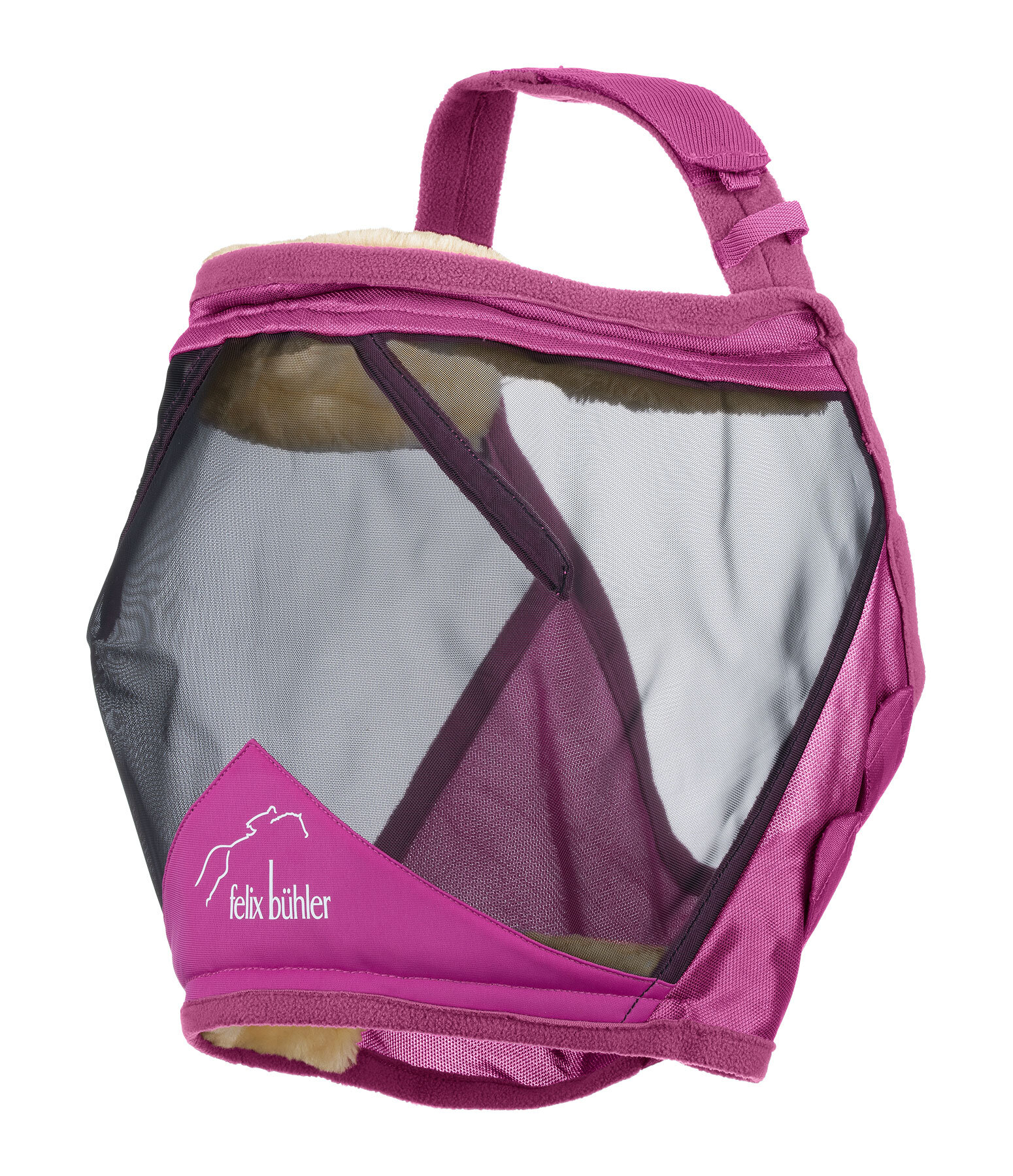 Solidna i lekka maska ​​przeciw muchom bez elementów usznych: Miękko wyściełany i pokryty polarem pasek na szyję można całkowicie otworzyć i płynnie regulować za pomocą KV. Szczególnie polecane dla koni o wrażliwych uszach, które nie lubią, gdy coś im się za uszy ciągnie. Gęsta siatka przeciw owadom z szwem dystansowym w polu widzenia, zapewniająca bezpieczną odległość od oczu i dobrą ochronę przed komarami i insektami. Siatka o drobnych oczkach blokuje co najmniej 50% promieniowania UV, zapewniając jednocześnie dobrą widoczność. Przytulna, polarowa wyściółka po wewnętrznej stronie nosa i czoła, a także polarowe wykończenie dookoła, aby zapobiec otarciom. Doskonałe trzymanie i wygoda dzięki podwójnemu zapięciu KV i pętelkom po obu stronach do mocowania do kantara. 100% poliester.
