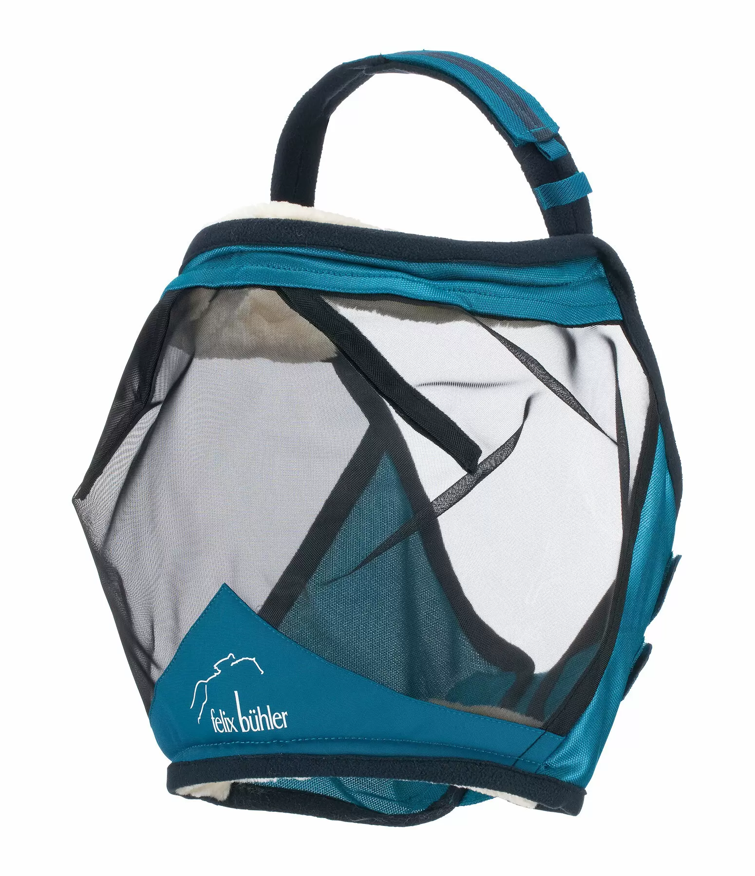 Solidna i lekka maska przeciw muchom bez elementów usznych: Miękko wyściełany i pokryty polarem pasek na szyję można całkowicie otworzyć i płynnie regulować za pomocą KV. Szczególnie polecane dla koni o wrażliwych uszach, które nie lubią, gdy coś im się za uszy ciągnie. Gęsta siatka przeciw owadom z szwem dystansowym w polu widzenia, zapewniająca bezpieczną odległość od oczu i dobrą ochronę przed komarami i insektami. Siatka o drobnych oczkach blokuje co najmniej 50% promieniowania UV, zapewniając jednocześnie dobrą widoczność. Przytulna, polarowa wyściółka po wewnętrznej stronie nosa i czoła, a także polarowe wykończenie dookoła, aby zapobiec otarciom. Doskonałe trzymanie i wygoda dzięki podwójnemu zapięciu KV i pętelkom po obu stronach do mocowania do kantara. 100% poliester.