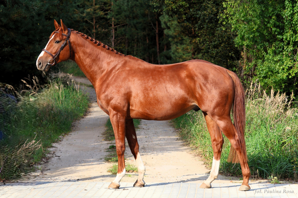 Rozpoczął w zeszłym roku pracę w nurcie "naturala", wykazuje się niesamowitą ciekawością i dążnością do poznawania nowych rzeczy. W trakcie zajeżdżania (chodzi stęp-kłus, drągi pod jeźdźcem), nie robi to na nim wrażenia - dodatkowo oswojony ze skateparkiem i dzieciakami, elektrycznymi pojazdami itp. jeździł przyczepą do zaprzyjaźnionej stajni na halę.