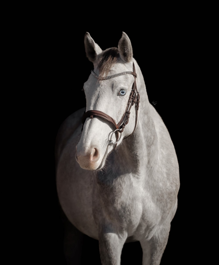 maść siwa, jedno niebieskie oko.