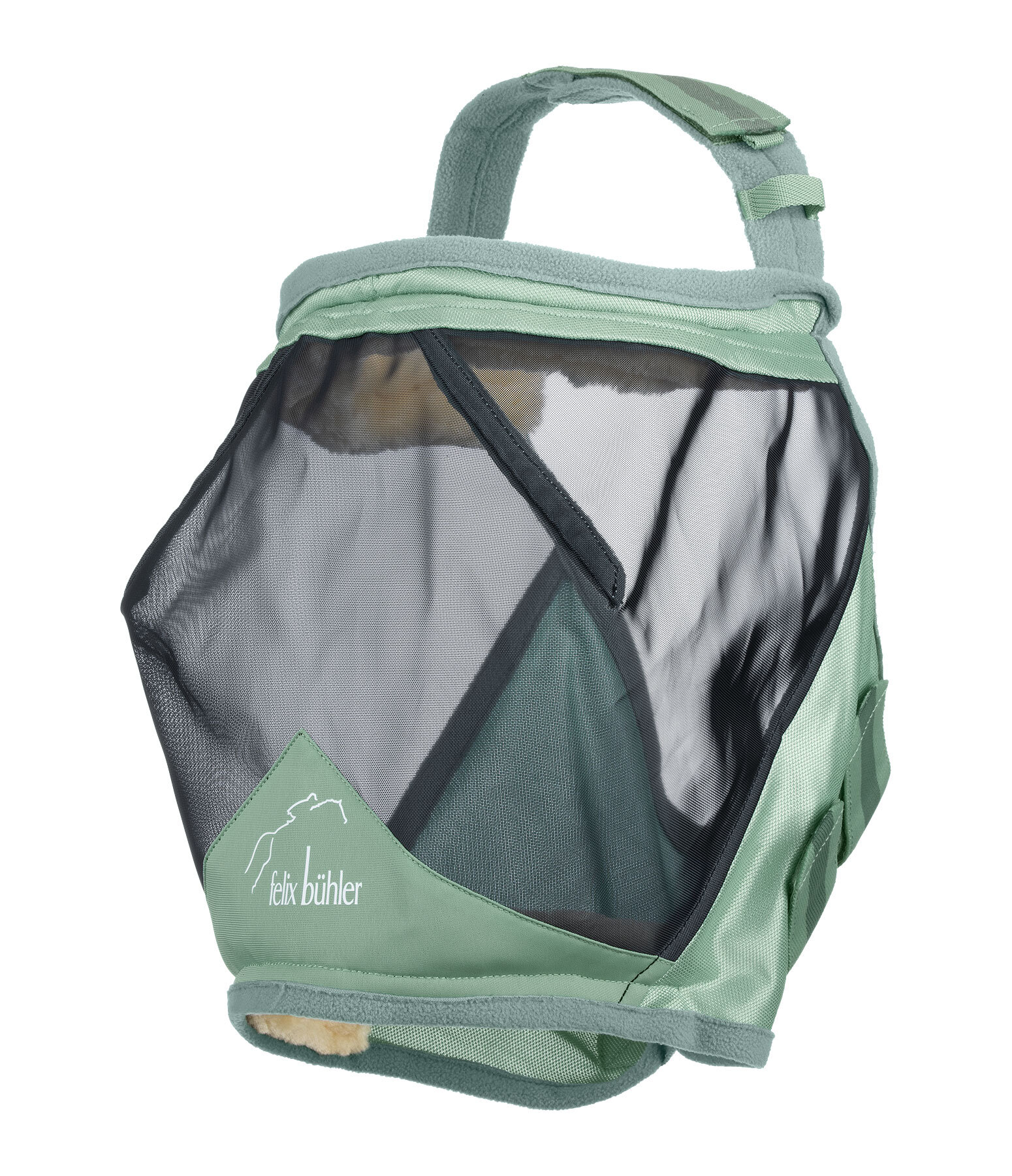 Solidna i lekka maska przeciw muchom bez elementów usznych: Miękko wyściełany i pokryty polarem pasek na szyję można całkowicie otworzyć i płynnie regulować za pomocą KV. Szczególnie polecane dla koni o wrażliwych uszach, które nie lubią, gdy coś im się za uszy ciągnie. Gęsta siatka przeciw owadom z szwem dystansowym w polu widzenia, zapewniająca bezpieczną odległość od oczu i dobrą ochronę przed komarami i insektami. Siatka o drobnych oczkach blokuje co najmniej 50% promieniowania UV, zapewniając jednocześnie dobrą widoczność. Przytulna, polarowa wyściółka po wewnętrznej stronie nosa i czoła, a także polarowe wykończenie dookoła, aby zapobiec otarciom. Doskonałe trzymanie i wygoda dzięki podwójnemu zapięciu KV i pętelkom po obu stronach do mocowania do kantara. 100% poliester.