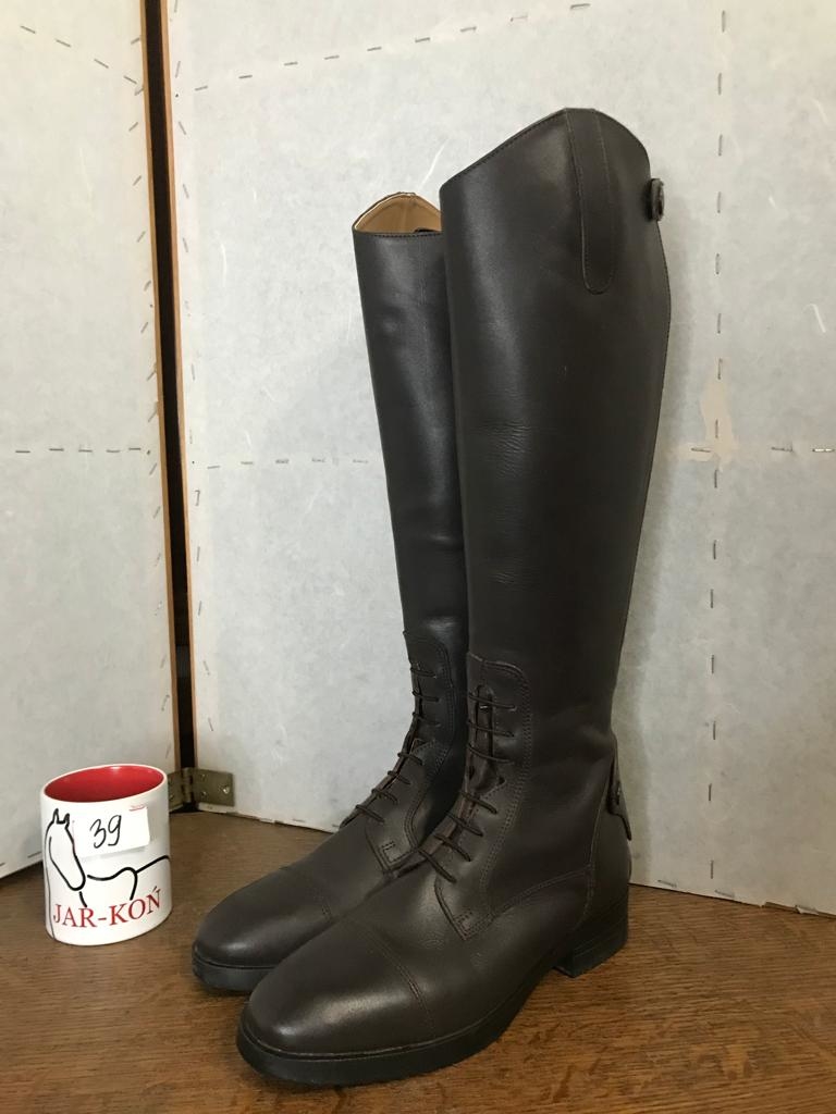 39.40. BRĄZOWE, SKÓRZANE OFICERKI, ROZMIAR 40, FIRMA STEEDS, ŁYDKA 39, WYS.: 44CM