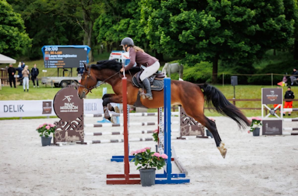 Koń jest zajeżdżony, po pierwszych startach w zawodach. Naskakany pod jezdzcem do 100cm, korytarzu sprawdzony do 125cm (wyżej ze względu na wiek nie próbowany). Szczery i chętny do skoków. Deski, baseny, płotki nie robią na nim wrażenia. Chodzi w teren sam i z końmi. W stałym treningu. Obecnie trenuje i startuje z powodzeniem na nim 13 latka.