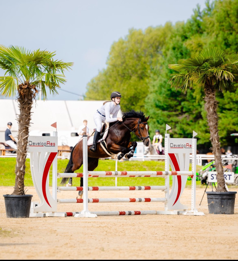 Bardzo grzeczna w codziennej obsłudze, bezproblemowa przy kowalu, goleniu i w transporcie – świetnie jeździ zarówno przyczepą, jak i koniowozem. Przyjazna i chętna do współpracy. Regularnie chodzi w tereny, sama jak i z innymi końmi oraz aktywnie startuje w zawodach do klasy L (100cm) czyli odpowiedniej wysokości do wieku. Gotowa na championaty i zawody młodych koni. Potrafi lotnie zmieniać nogi oraz zna elementy ujeżdżenia klasy P.