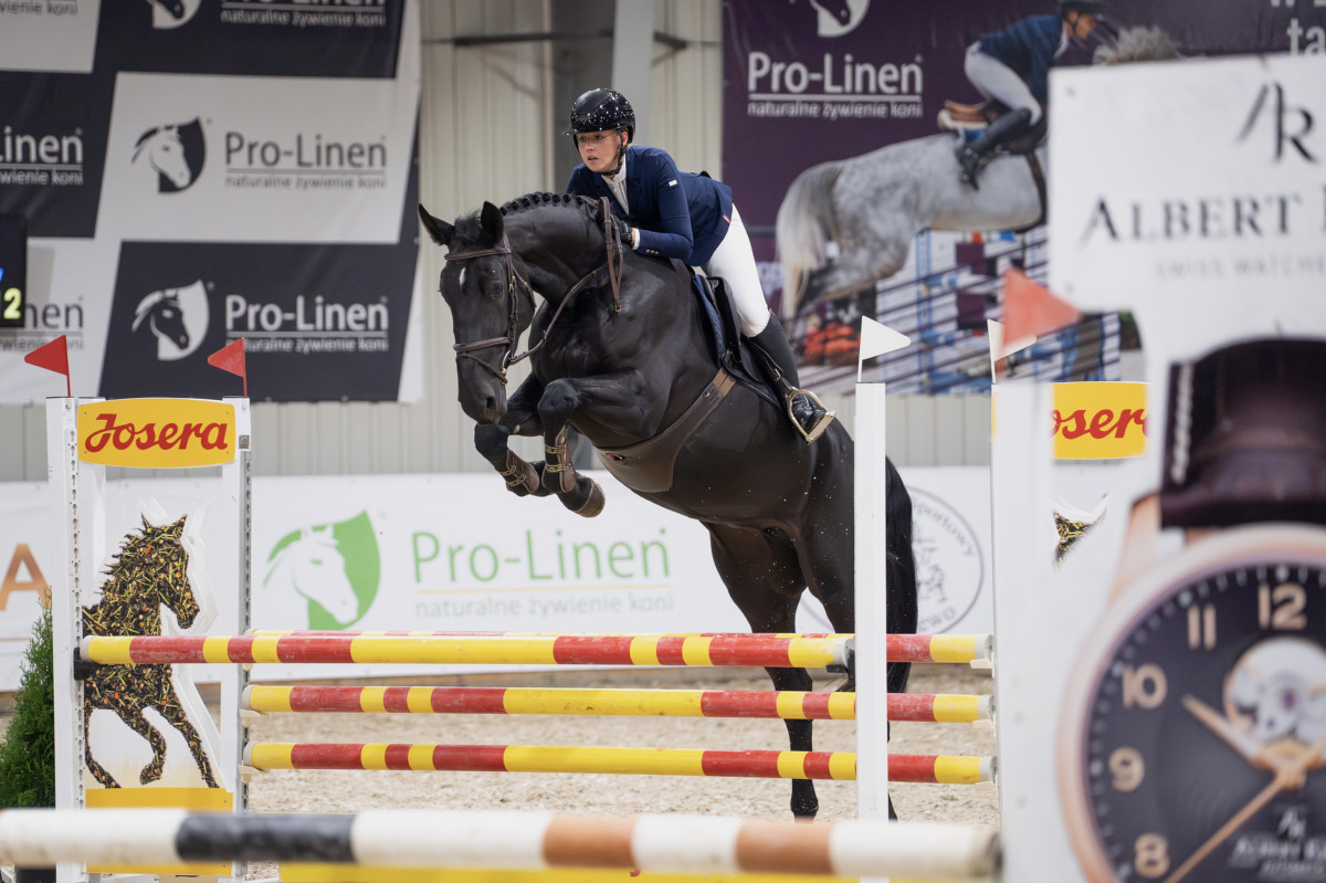 Na sprzedaż przyszłościowa, niezwykle obiecująca klacz. Ma za sobą pierwsze udane zawody. Łatwa w jeździe, szybko się uczy. Dobrze znosi nowe sytuacje – jest odważna i zrównoważona. Bardzo miła w codziennym obejściu. Bezproblemowa przy zabiegach pielęgnacyjnych, przy kowalu, w transporcie itp. Bez narowów i nałogów. Pod stałą opieką fizjoterapeuty oraz dietetyka.