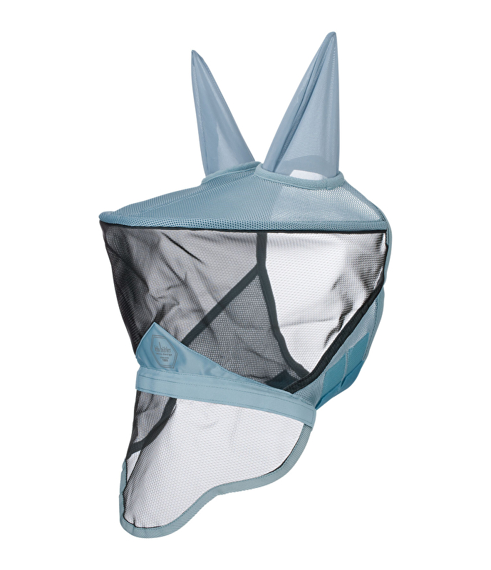 Maska przeciw muchom inspirowana pszczelarskim sprzętem ochronnym z wyjmowanym nozdrzem i ochroną UV wykonaną ze szczególnie oddychającej siatki Moisture Vapor Transmission (MVT), która umożliwia stałą cyrkulację powietrza pod maską i zapobiega gromadzeniu się ciepła. Idealna ochrona uszu, oczu i nozdrzy przed irytującymi komarami i owadami. Siatka przeciw muchom ripstop o gęstych oczkach i szczególnie trwała ze zintegrowanym pierścieniem, który zapewnia szczególnie wygodną odległość materiału siatki od oczu i pozostaje na swoim miejscu nawet podczas toczenia się i huśtania. Dodatkowa ochrona wrażliwego nosa konia dzięki anatomicznie ukształtowanej osłonie nozdrzy, którą można zdjąć za pomocą KV, która pomija otwory nosowe, dzięki czemu nie podrażnia konia i nie utrudnia mu oddychania. Z miękkim polarowym brzegiem dookoła, aby zapobiec otarciom. Części nauszne wykonane z elastycznego, perforowanego materiału stretch. Podwójne zapięcie na rzep zapewnia bezpieczne dopasowanie.
