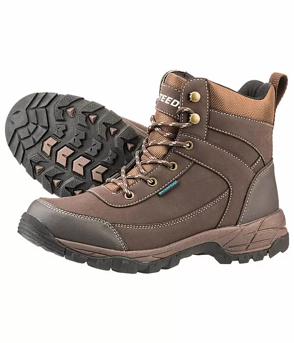 Wygodne buty jeździeckie z wodoodporną membraną. Miękka wkładka dwuwarstwowej podeszwy (podeszwa środkowa z miękkiego materiału EVA, podeszwa zewnętrzna z antypoślizgowej gumy) sprawia, że ​​te buty jeździeckie są niezwykle wygodne. Mocna cholewka z PU z podszewką z oddychającej tkaniny. Dalsze szczegóły: wzmocnienia w obszarze pięty i palców, przyciągające wzrok kontrastowe szwy.