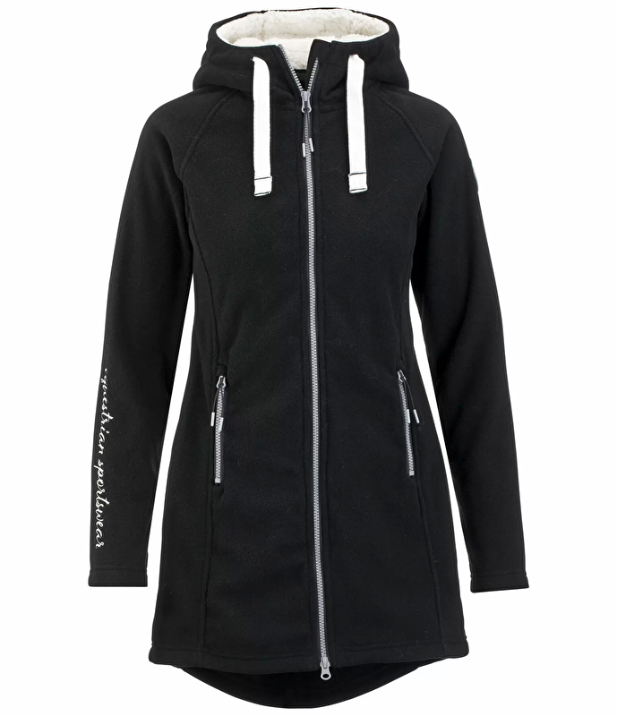 Płaszcz polarowy z kapturem STEEDS Greta to absolutny must-have jesiennego looku. Przytulny, ciepły polarowy płaszcz damski ma regulowany kaptur podszyty miękkim pluszowym futerkiem. Dzięki temu wrażliwy obszar szyi i szyi jeźdźca jest przyjemnie ciepły i chroni go przed zimnymi przeciągami. Dwukierunkowy zamek z podszewką z przodu zapewnia maksymalną swobodę ruchu na koniu dzięki różnym opcjom noszenia polarowej kurtki jeździeckiej z kapturem. Dwie zapinane na zamek przednie kieszenie zapewniają wystarczającą ilość miejsca do przechowywania. Naszywka z polaru i haft na rękawie dopełniają prosty, ale elegancki fason płaszcza polarowego.