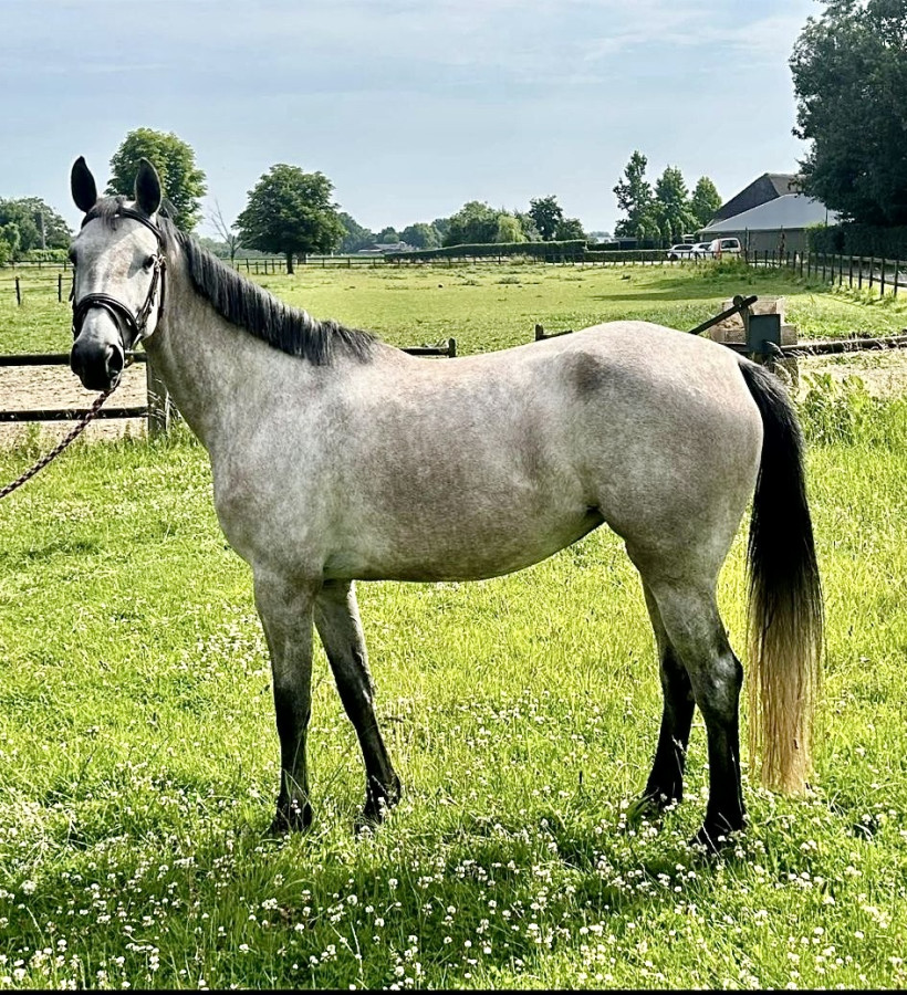 Topowa, młoda klacz skokowa o świetnym pochodzeniu – po Air Force WM (A Golden Boy Hero Z x Farandole van Herikhave), od matki po Casco (Cascavelle x Faret).