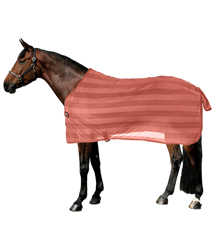 Ultralekka derka o najlepszym stosunku ceny do wydajności do codziennego użytku. Posiada łatwe zapinanie na klatce piersiowej i pasek w talii zapobiegający zsuwaniu się. Idealny przed treningiem jako niezawodna ochrona przed dokuczliwymi insektami lub po treningu jako derka potna. Bardzo pomocna również w transporcie lub spacerach latem. Dzięki lekkiemu materiałowi (75 denierów) derkę można szybko i łatwo rzucić! Materiał występuje na przemian w paski, pomiędzy węższymi i szerszymi, przepuszczającymi powietrze siatkami, co zapewnia dobrą oddychalność derki. 100% poliestru.