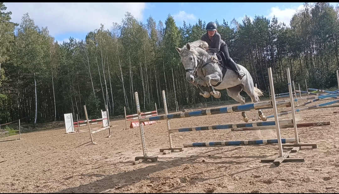 ???? Skoki w parkurze 115/120 pojedyncze 130 ( w korytarzu zamknięte stojaki o wysokości ok.150 )