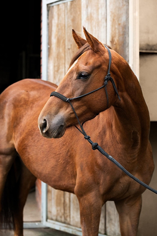 Bezproblemowo przyjęła siodło w wieku 3,5 roku. Pracowała w 3 chodach, zna drążki pod siodłem, jak i na lonży. Ma dobry ruch.