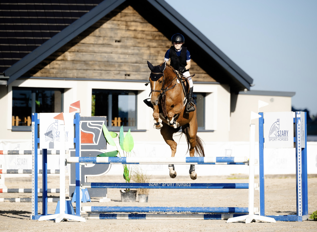 Na sprzedaż bardzo przyszłościowa 5 letnia klacz. Klacz. Cechuje ją bardzo dobra głowa, jest prosta i przejemna w pracy po płaskim. Obdarzona ogromną siłą i potęgą w skoku. Skacze deski i podmurówki. Odbija się z każdego odbicia. Typ „zawsze po drugiej stronie”. Wybacza wszystkie błędy. Startowała w zawodach pod dziećmi do klasy L, doświadczona w konkursach do klasy P. W domu naskakana do 120