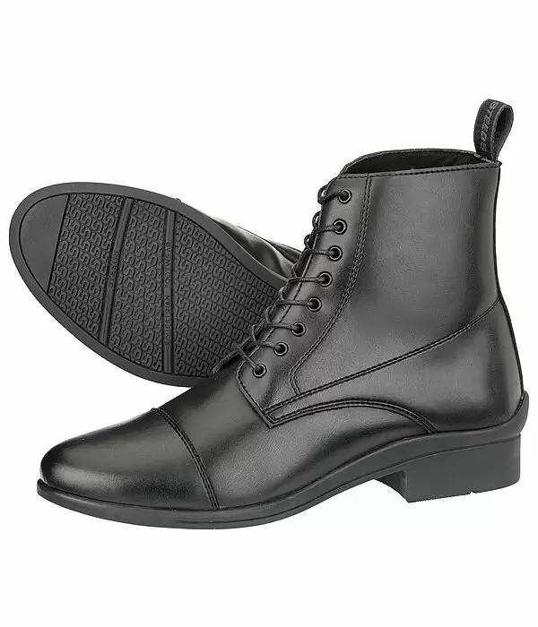 Botki sznurowane wykonane z miękkiego materiału wierzchniego. Teraz ze sportową podeszwą zewnętrzną i ulepszonym dopasowaniem. Wyściółka z tkaniny tekstylnej, gumowa podeszwa zewnętrzna z piętą do jazdy konnej.