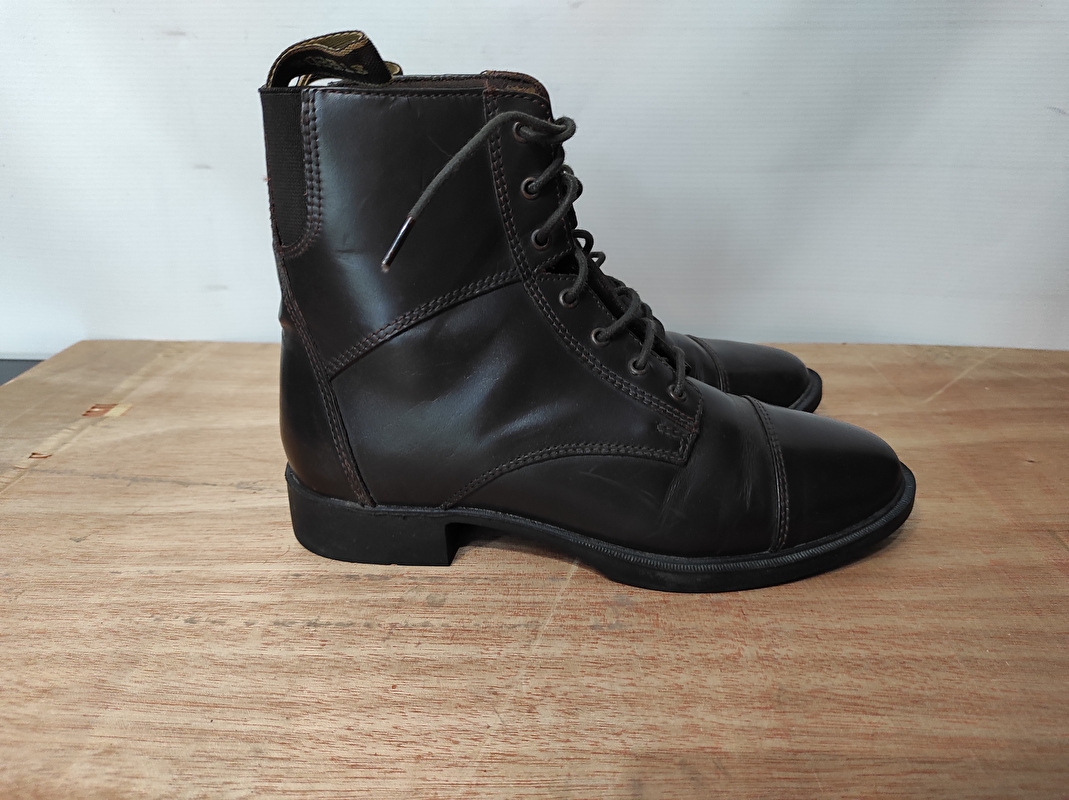 Sznurowane sztyblety wykonane ze skóry bydlęcej ze elastyczną wstawką po obu stronach dla wygodnego dopasowania. Teraz ze sportową podeszwą zewnętrzną i ulepszonym dopasowaniem. Nowo zaprojektowana gumowa podeszwa zewnętrzna z piętą do jazdy konnej zapewnia niezbędne wsparcie. Wewnętrzna wyściółka wykonana z tkaniny tekstylnej.