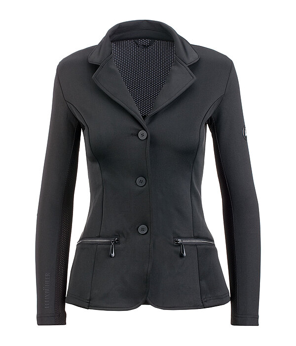 Sportowa marynarka konkursowa z ukrytym zamkiem błyskawicznym pod listwą guzikową. Wykonana z szybkoschnącego i oddychającego materiału funkcjonalnego. Wstawki z siateczki pod rękawami i w górnej części pleców dla maksymalnej wentylacji. 2 przednie kieszenie zapinane na zamek, naszywka Felixa Bühlera na rękawie i nadruk Felixa Bühlera na rękawie. Błyszcząca taśma wykończeniowa na kołnierzu. 95% poliester, 5% elastan.