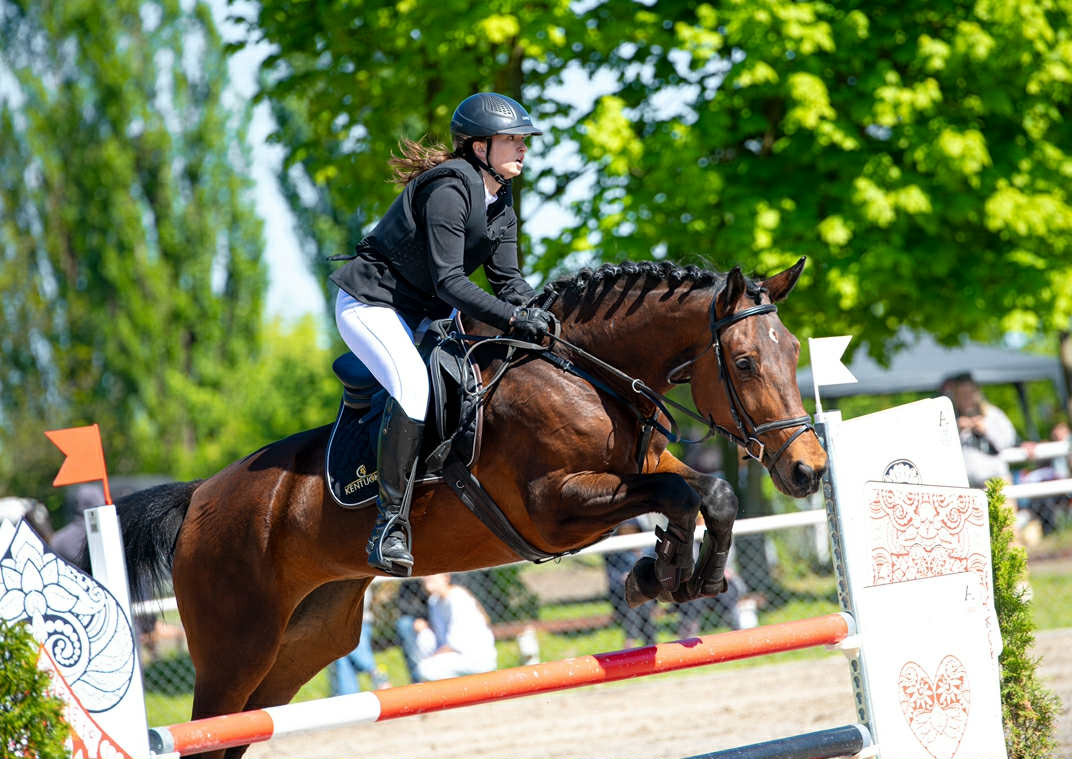 Klacz z dobrą sylwetką i charakterem. Na zawodach spisuje się bardzo dobrze, grzeczna w transporcie, na rozprężalni i w stosunku do innych koni, uważna. Na chwilę obecną pojedyncze skoki do 120, sprawdzona w startach do L, szanuje przeszkody. 5 miejsce w Warce na zawodach regionalnych. Chodzi regularnie w tereny, bez problemu także w pojedynkę. Od czasu do czasu wsiadają osoby uczące się - grzeczna. Cena do negocjacji.